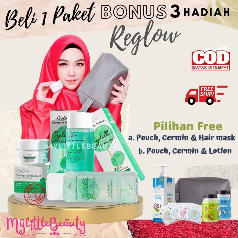 Paket Reglow Cream Toner & Facial Wash Pencerah Pemutih Wajah Glowing / Skincare Anti Aging Perawatan Kecantikan Pelembab & Pengencang Wajah Bpom Halal Aman Murah 100% Original