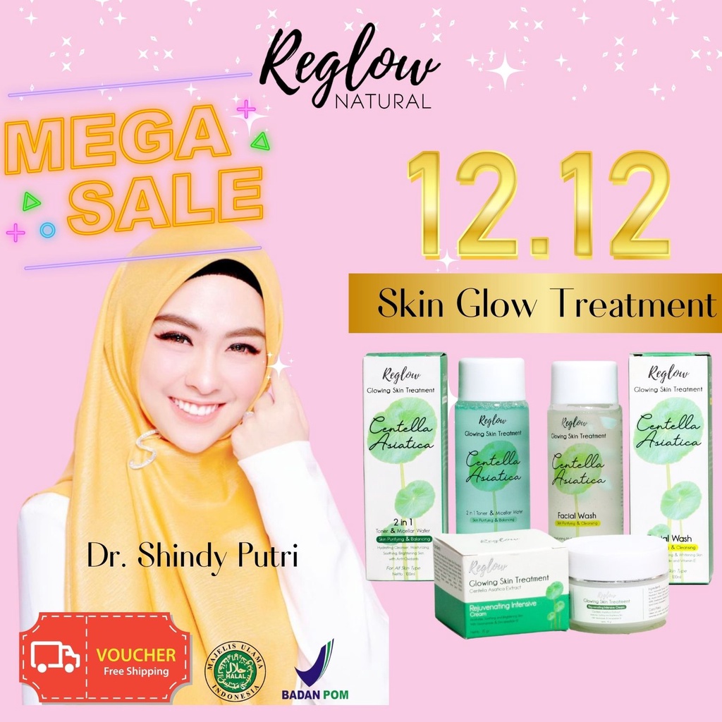 PAKET REGLOW Skincare Original Glow Skin Treatment Perawatan Pemutih Wajah BPOM Cream Penghilang Flek Hitam Toner Kulit Kusam Facial Wash Pembersih Jerawat Kosmetik Reg Glow Beauty Re Glow dr Shindy Putri Official Store Ori