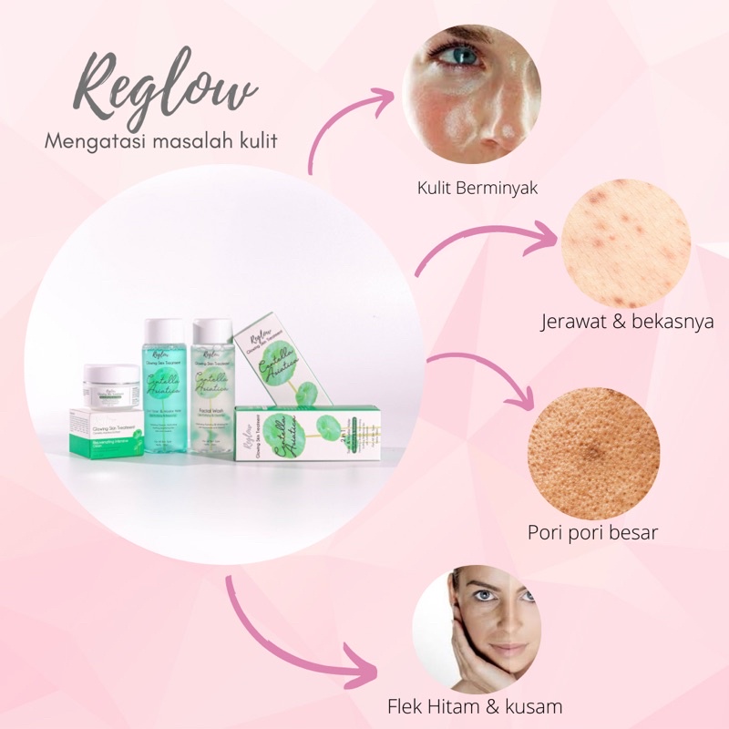Beli Paket Skincare Perawatan Pencerah pemutih Pelicin Wajah Reglow untuk mengatasi kulit berjerawat, flek hitam, kering, skin barier, mencerahkan dan glowing | Niacinamide | Centella asiatica | Allantoin | aman bumil busui ampuh pria cowok BPOM Sekarang Juga